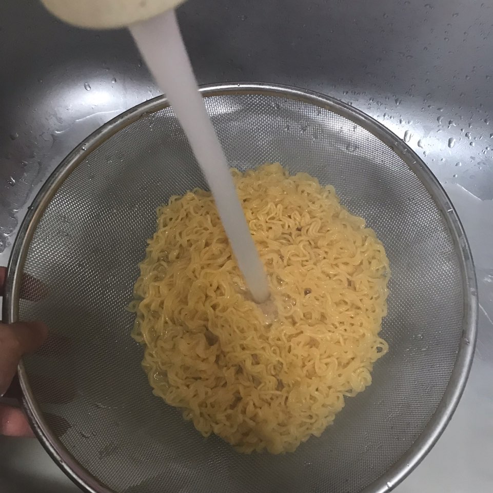 1. 끓는 물600ml(큰컵 3컵)정도에 면을 넣고 약 4분간 끓인 후 면을 건져 찬물에 헹군 다음