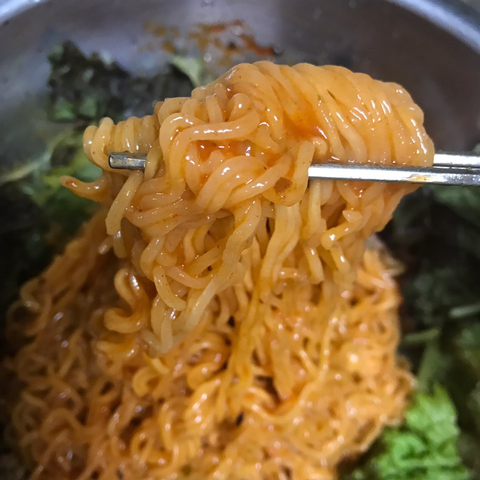 이 제품은 열무랑 매실 농축액이 들어갔다고 하네요!! 여름 겨냥 상품 ㅋㅋㅋㅋ 얆은 면과 소스만 들어있어요 ㅎ