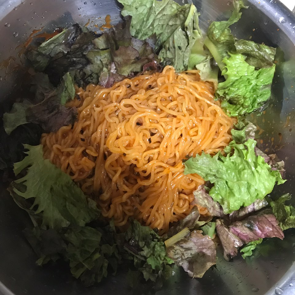 보기만해도 열무비빔면 같은 비주얼 아닌가요 ㅎ 시원하게 생겨서 ㅋㅋㅋㅋ 이거는 부모님 하고 먹어서 제발 맛있기를 빌었어요...