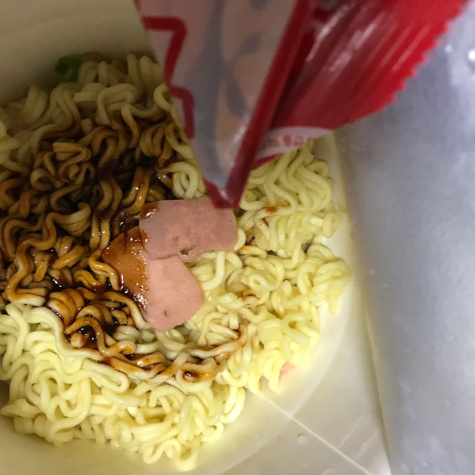 구성품 볼게요~ 면+ 야채,햄 후레이크+소스로 구성되어 있네요 ㅎ