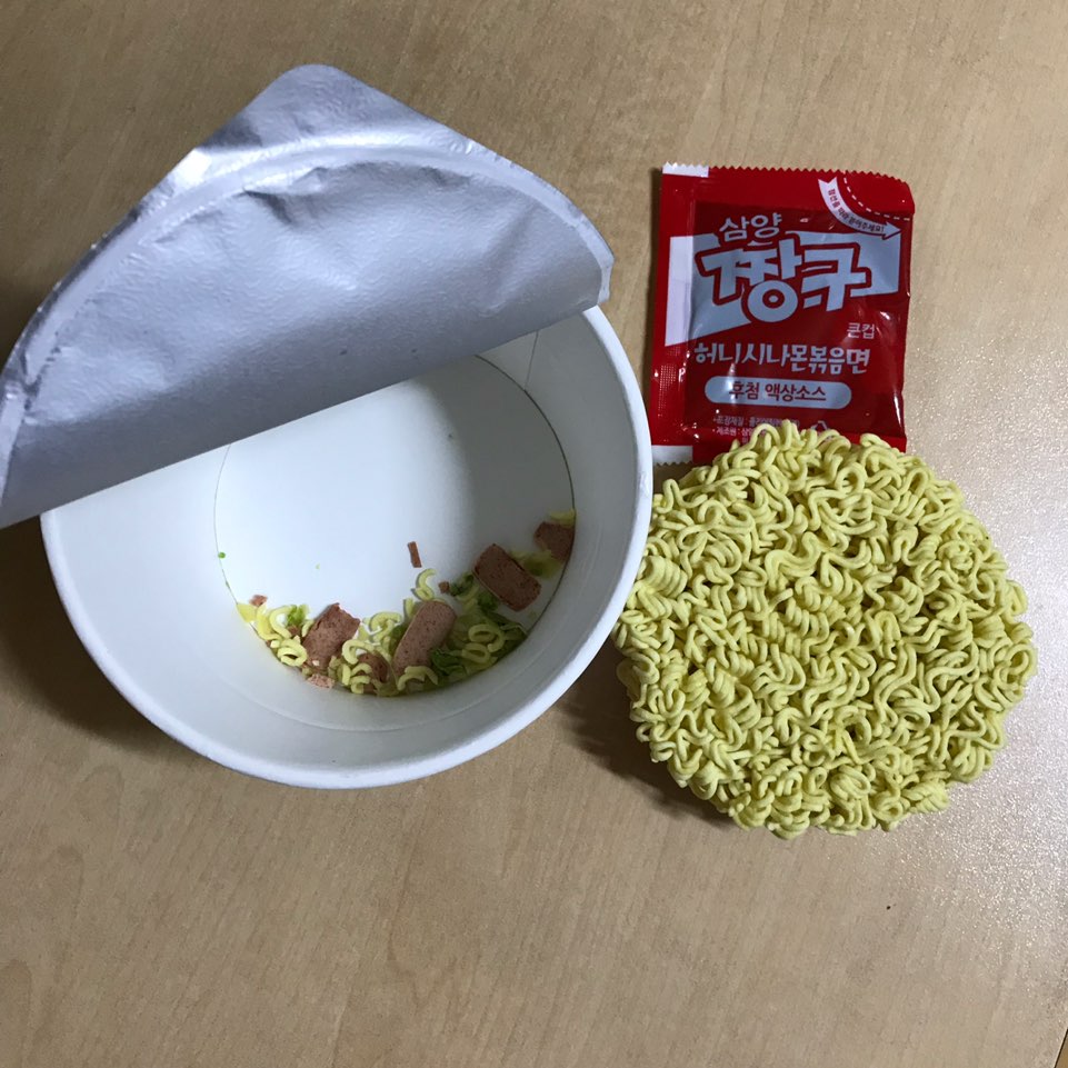 면은 얆아서 좋았어요 ㅎ 이제 제대로 비벼서 먹었는데 간장치킨 소스 맛이 처음에 나다가 계피향이 뒤에 아주 살짝 나요. 전 계피맛이 많이 날까 봐 걱정했는데 거의 안 나서 좋았아요 ㅎ 맛도 나름 자극적이어서 더 좋았어요ㅎ 먹고 나서 살짝 얼얼한 정도의 매운맛도 나요. 솔직히 과자랑 맛이 달라요 과자는 달달하고 계피향도 라면에 비해 많이 나지만 라면은 그냥 간장치킨 소스 맛이라고 생각이 드네요 ㅎ