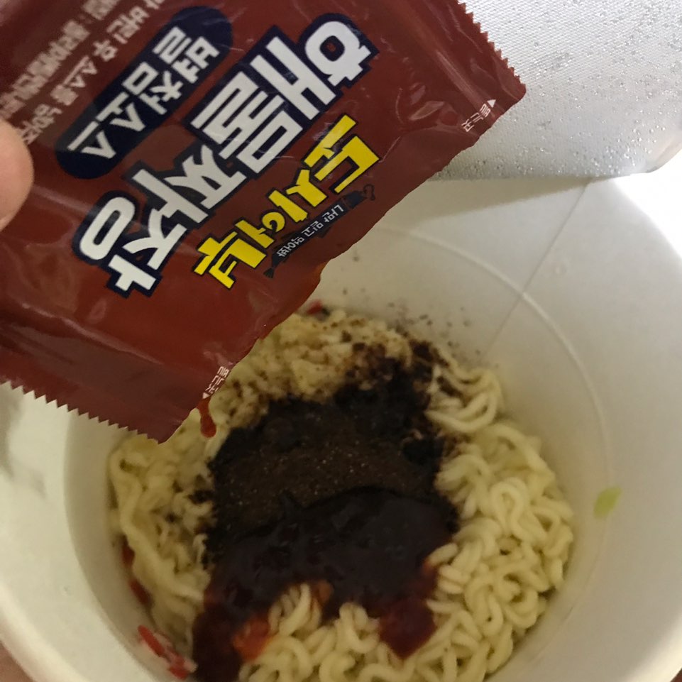 3. 분말수프와 해물 짜장 별첨 소스를 넣고 잘 비벼 드시면 됩니다.