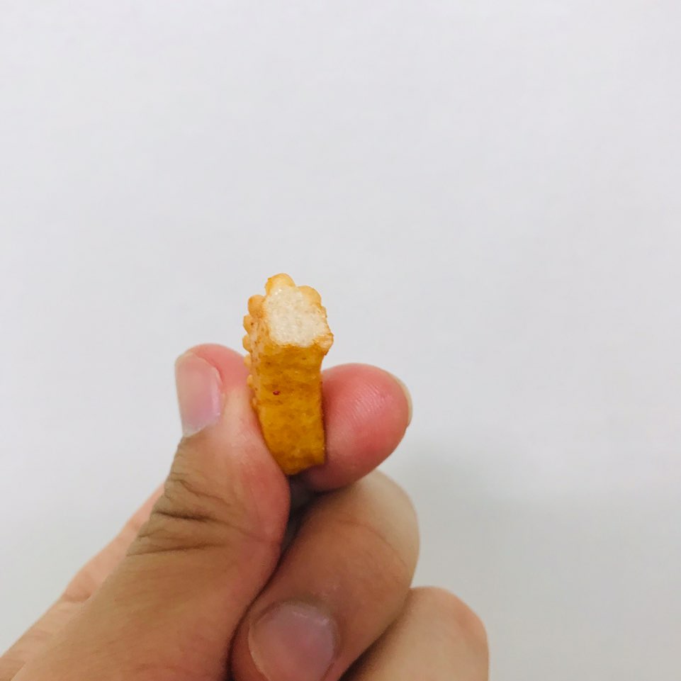 단면은 이렇게 생겼어요.ㅎ 맛을 설명하자면 제가 처음 한 입 먹자마자 든 생각은 매운 새우깡이라 매우 흡사하다고 생각했어요, ㅎ 매운 새우깡의 가루랑 맛이 상당히 비슷해요. 맵기도 비슷하고 굳이 뽑자면 이게 더 매운 듯...? 계속 먹다가 보면 그냥 달달 구이 맛이 많이 느껴져요 ㅎ 그냥 첫맛만 매운맛이 강하고 먹다 보면 익숙해져서 그런지 매운맛보다는 달달한 맛이 많이 느껴지는 거 같아요. 과자도 바삭바삭해서 좋고요. 달달 구이 맛보다 전 매콤 구이 맛이 낫더라고요 ㅎ 달달 구이 맛은 너무 달아서 물리지만 이건 매콤해서 그나마 덜 물려요... 그래도 자극적이라서 저는 개인적으로 재구매할 거 같아요 ㅎ 매콤, 달달의 향연이 생각보다 좋아요. 요즘 과자보다 옛날 과자 맛도 아주 살짝 나서 어른들도 좋아하실 거 같아요!!